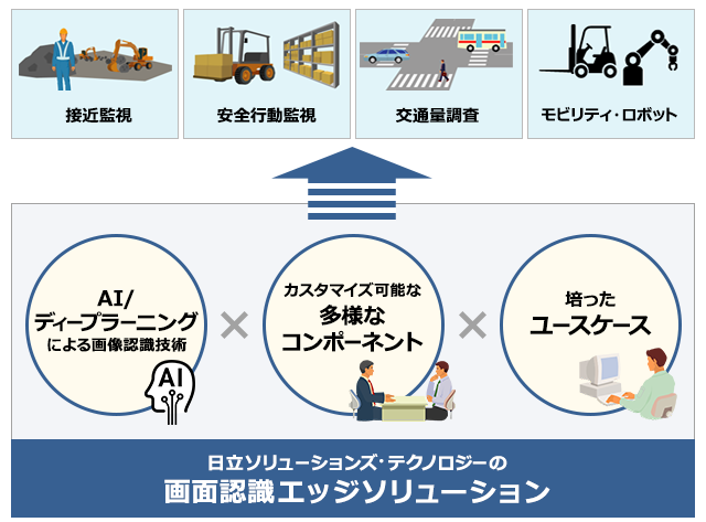 AI/ディープラーニングによる画像認識技術を活用して、お客さまに安全行動監視や接近監視カスタムソリューションなどを提供します。