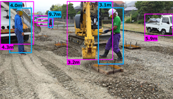 単眼カメラで高速に物体を検出し、検出物体までの距離を推定します。安全/接近監視カスタムソリューションに活用できます。