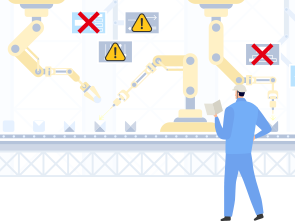 “製造現場”と“経営”をつなぎ、変化するビジネス環境に迅速かつ柔軟に対応します。FA(工場自動化)やIoT技術を活用し、ライン制御や指図管理、設備保全管理を含む製造現場の稼働状況をリアルタイムに把握・管理します。30年以上にわたり幅広い業種のお客さまに導入されており、長年の知見を活かして現場作業者(フロントラインワーカー)の業務効率化や課題解決を支援し、製造DXの実現を促進します。