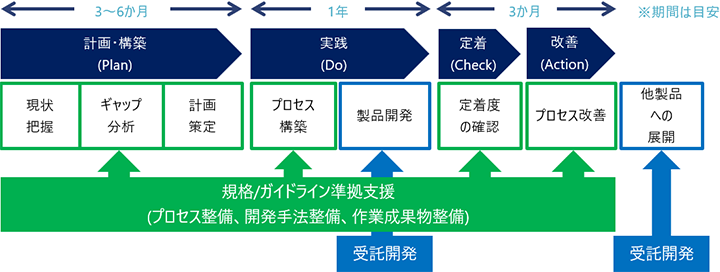 ISO/SAE 21434とISO 26262の要件への適合を考慮して、製品のセキュア開発を行うソフトウェア開発プロセス構築と実践を支援 |