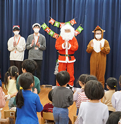 イベントでは、子どもたちから素敵な歌とダンスのプレゼントを、サンタクロースからはお菓子のプレゼントをそれぞれ贈り合い、笑顔に包まれる楽しい時間を共有することができました。