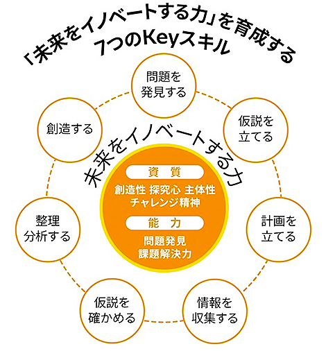理工系人財に求められる資質(探究心、主体性、チャレンジ精神、創造性)と能力(問題発見・課題解決力)を磨き、未来のイノベーターに必要な問題発見・課題解決の力を育てる探究的な学習を提供しています。